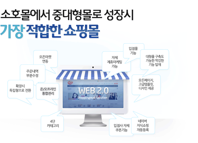 ¼ºñ½º, À¯Åë, Á¦Á¶, µô·¯, °³ÀÎ µî ´Ù¾çÇÑ »ç¾÷ÁÖü°¡ ÆÇ¸Å°ü¸® ÇÒ ¼ö ÀÖ´Â »óǰ°ü¸®/¿î¿µ ½Ã½ºÅÛ ´ÜÀÏ»óÁ¡, Àü¹®¸ô, Á¾ÇÕ¸ô, ÀÔÁ¡¸ô µî ´Ù¾çÇÑ ÀüÀÚ»ó°Å·¡ ½Ã½ºÅÛ ±¸Ãà °¡´É ¹è¼Ûºñ, Àû¸³±Ý, ¹Ýǰ, ȯºÒ, °¡°ÝÁ¤Ã¥ µî ´Ù¾çÇÑ ¿î¿µÁ¤Ã¥ º¯È Àû¿ë °¡´É
